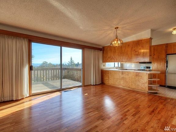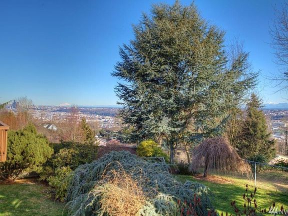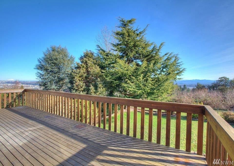 Top of the world 180 degree Sweeping Views from this Mid-Century Masterpiece! From morning sunrises & snow-capped Cascades to twinkling evening lights, views from all living areas & entertainment sized deck! Massive stone fireplace, hardwood floors, newer double-pane windows & newer roof. Heat pump/AC, huge 2 car garage/shop space & fully fenced yard. Lwr level could be great guest quarters (has 3/4 bath/separate entrance). Located on quiet street just steps from Westcrest Park! Come See today!