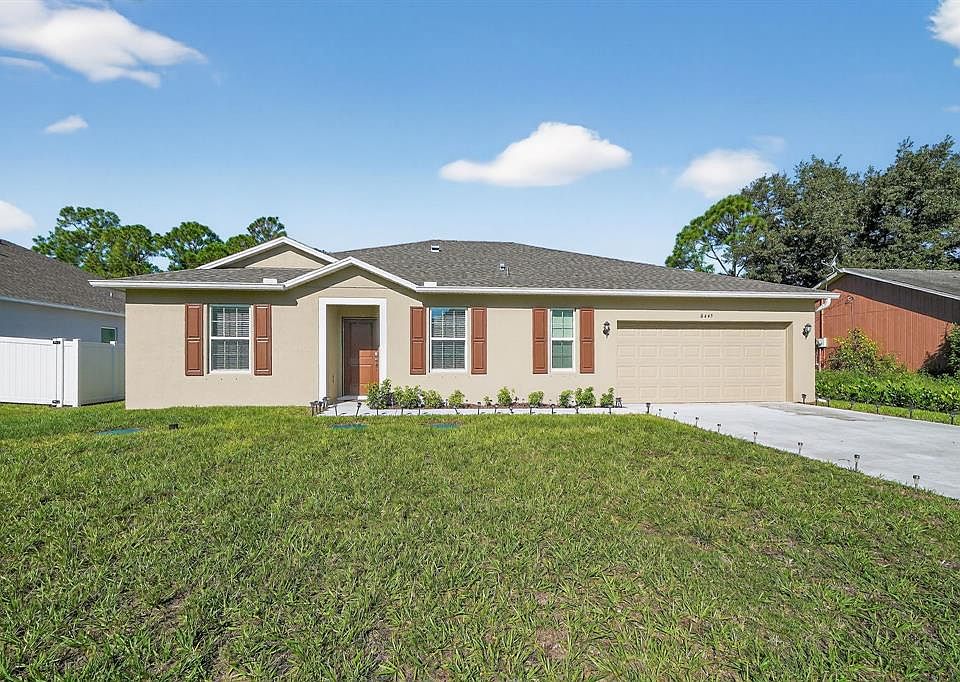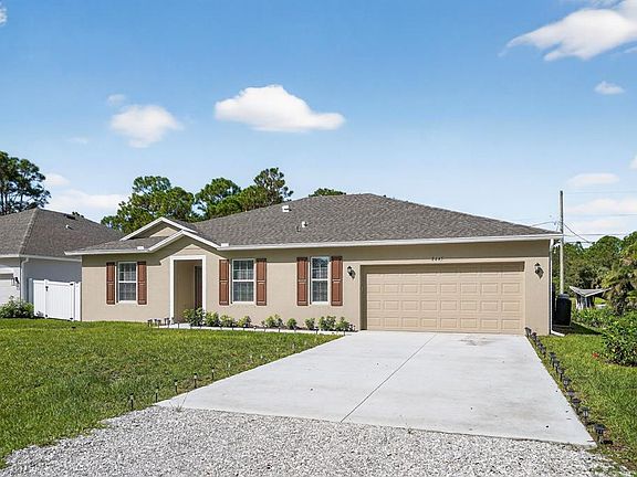 Gracious new construction home has a luxurious touch with tile throughout. Master bedroom has abundant light and a spacious walk-in closet. Kitchen and 2 baths feature quartz countertops, with dual vanities and a frameless glass shower in the master. Enjoy fresh filtered water from a private well with 3 stage reverse osmosis and no water bills! Three additional bedrooms offer large closets. The dining room can also serve as a foyer, while the breakfast nook opens to the patio. Kitchen includes tall soft-close cabinets and a pantry large enough for all your needs. The nicely sized laundry room houses AC unit. The 2 car garage has hurricane shutters. The Samsung fridge, wash and dryer appliances are negotiable.