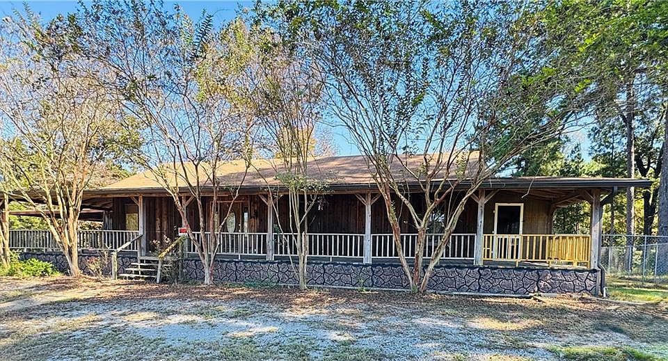Welcome to this beautiful cedar-built home that blends rustic character with modern comfort. From the moment you arrive, the huge covered front porch sets the tone for relaxed living. On the side and back, you’ll find screened-in porches that extend your living space and invite you to unwind outdoors year-round. The spacious kitchen features an island, granite countertops, and a built-in dining table with bench seating. French doors off the living room open to the oversized screened back porch overlooking the fenced backyard. The primary ensuite bedroom has private porch access and three closets, including a walk-in closet and walk-in bathtub. A workshop with AC attached to a large shed with covered parking large enough to store a tractor, boat, or camper adds even more value. Conveniently located just off the highway, yet set back for privacy — this one has it all!