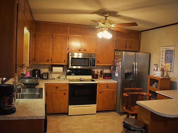 Wood-burning stoveKitchen and dining areaVery large family denTwo bathroomsThree bedroomsLots of curb appealLarge storage building