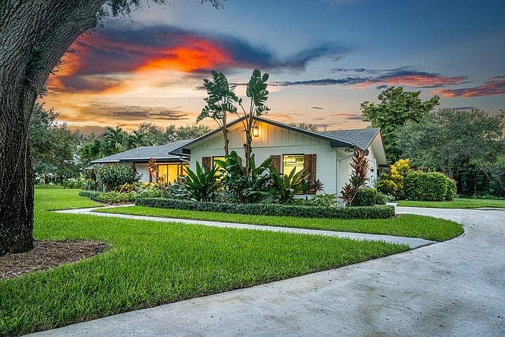 Welcome to your private 1.42 acre paradise in the middle of Palm Beach Gardens. This newly renovated, contemporary ranch style ''smart'' pool home has tranquil, California vibes nestled on an expansive 1.42 acre lot. in a private cul-de-sac. Enjoy your designer styled home, complete with luxury features throughout. Experience true Florida living with tons of natural light. Spacious living and dining areas with stunning custom lighting fixtures overlook a beautiful bright kitchen, complete with modern Italian cabinetry and Schwinn hardware. Gorgeous calacatta quartz countertops with a custom waterfall edge and a bar pass through for entertaining. All Bosch appliances, including built in coffee bar. Huge 12 x 24 Italian porcelain tiles throughout elevate the contemporary style. The huge, private primary bedroom wing includes a lovely sitting area plus dual expansive walk in closets with custom closet systems. Relax in the spa like primary suite bath-complete with double sinks overlooking the lush landscape. Grab your favorite book and enjoy the luxurious free standing soaking tub plus expansive shower in a beautifully designed wet room. Off the primary suite is a complete bedroom/den/office plus full bath. The split bedroom plan is perfect for privacy, with two bedrooms plus full cabana bath on the other side of the home. Smart, energy efficient home features include Nest thermometers for both a/c units, Ring doorbell and cameras, built in wifi booster plus reverse osmosis water system for the kitchen and laundry. Current owners recently added new Icynene insulation throughout ($12k upgrade) for maximum cooling and heating efficiency. Venture outside and enjoy an incredible back yard oasis, complete with salt water pool and tropical tiki hut. Also includes newly sealed 2 car garage plus custom covered gutters on the home exterior for maintenance ease. The house has complete hurricane impact windows throughout for your protection and CBS construction. There is PLENTY of room to expand or build on the home, add pickleball courts or a guest house. The owner already has architectural plans for a possible future expansion if you wish. The large, beautifully landscaped lot can accommodate whatever your heart desires. This meticulously kept home truly has it all- turn key perfection! This stunning home is located in equestrian friendly Horseshoe Acres, right in the heart of Palm Beach Gardens. Horseshoe Acres enjoys LOW HOA fees and a gated entry. Location is everything!! It's one of the only neighborhoods left in the bustling area with large lots, conveniently located within a few minutes to all major highways, beaches and shopping. You'll truly feel like you're in your own, private paradise. Furniture negotiable. Currently tenant occupied until 3/19/25. Great investment opportunity!