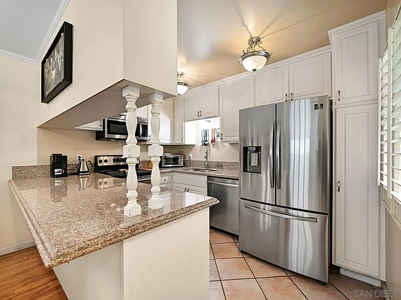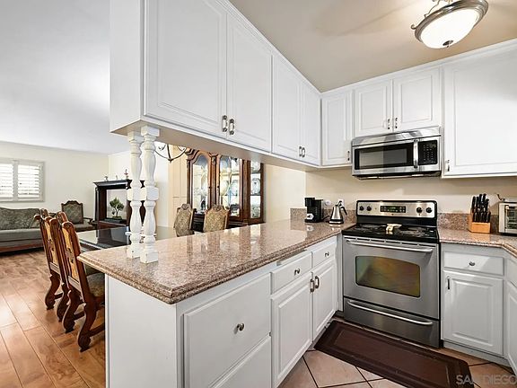 Rare end-unit, ground-level home with no neighbors above or below! This updated residence offers modern comfort with OWNED SOLAR, SELLERS HAVE ZERO ELECTRIC BILL, dual-pane windows, durable LVP flooring, remodeled bathrooms, and a beautifully appointed kitchen featuring stainless steel appliances, crisp white cabinetry, and granite countertops. The spacious primary suite includes patio access, a walk-in closet, and a private en-suite bath. Enjoy the convenience of in-unit laundry and a private patio. Carport right behind unit, direct access into home from patio. Community amenities include a pool, and the home comes with TWO ASSIGNED PARKING SPACES—one carport and one uncovered. Ideally located in Horizon Village, just minutes from shopping, dining, and easy access to freeways 52 and 125.