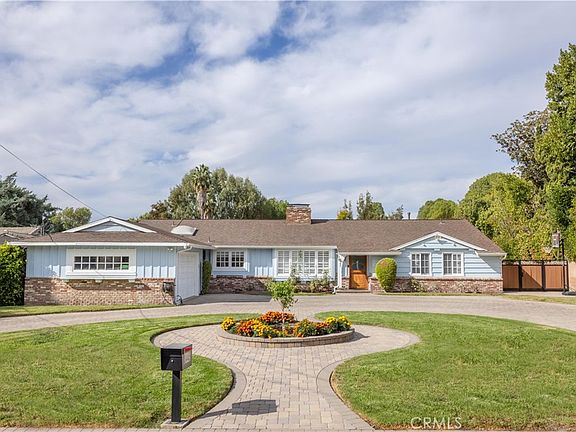 Beautiful half-acre Sherwood Forest adjacent property. Paved circular driveway with dutch-door entrance.The cozy den includes a fireplace & opens to a kitchen complete with granite counter tops, Subzero refrigerator, spacious pantry & double oven.The living room includes vaulted high ceilings with sightlines to kitchen and formal dining room. There are 3 separate wings!The primary suite has 2 walk-in custom closets with an en suite bathroom that has a jetted tub, shower with steamer, bidet & floor-to-ceiling cabinets.A separate private office within the primary suite has a built-in desk & custom shelving, french doors & a bay window.The second wing has 3 bedrooms, one of which includes a custom walk-in closet & en suite bathroom.The other 2 bedrooms within the new wing include newer custom wood French windows & custom built-in closets - double the size of a standard closet.The third wing has the 5th bedroom & separate bathroom.The house includes real wood maple floors throughout, French windows & doors, recessed lighting & a hardwired security system with cameras covering the property.In addition, there are 2 newer HVACs, solar panels, water softener, sub-meter, newer pavers in the front & backyard.A separate detached 2nd office with heating & an AC system (not included in the square footage).This office is located in the back of this park-like property & was formerly a music studio.The backyard includes a gated pool (which is currently removed), BBQ area and patio. A large family home and an entertainers dream.