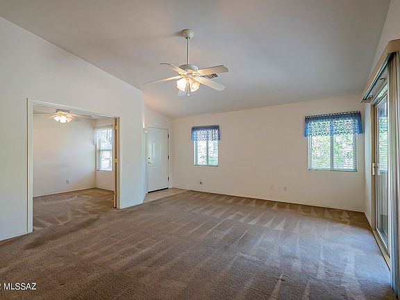 Rita Ranch 4 bedroom, 2 bath, 1538 Sq Ft home features a bright and open eat in kitchen with pantry. Family room with cathedral ceilings, slider to patio and double doors to an additional bedroom, great space for a den or playroom. The master suite offers a walk in closet, dual vanity, soaker tub and separate shower. One bedroom has two built in desks and murphy bed, perfect for your home office and guest suite. Laundry room with storage, ceiling fans and window coverings, wood laminate flooring in kitchen and dining area. Relax in your low care landscaped back yard with extended patio with fan and mature vegetation. Located in The Award Winning Vail School District. Near parks, lots of dining choices, shopping and easy access to Raytheon, DMAFB and I-10.