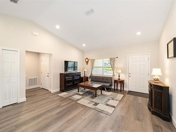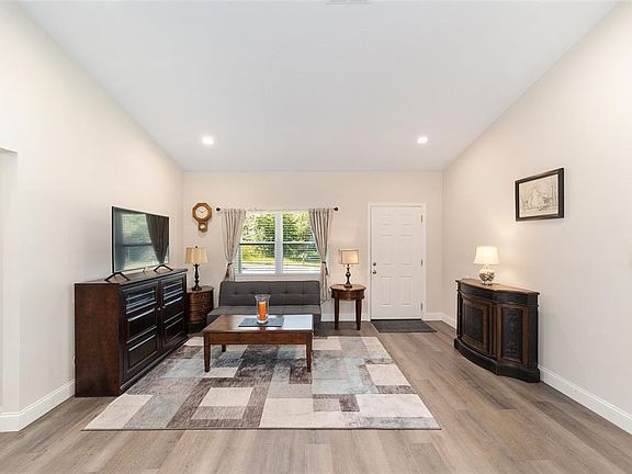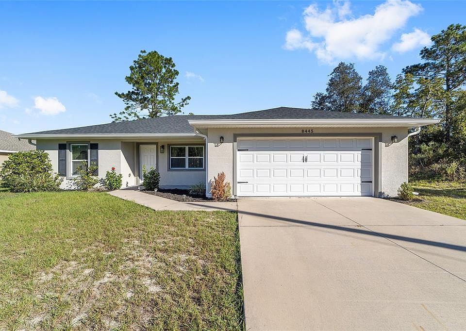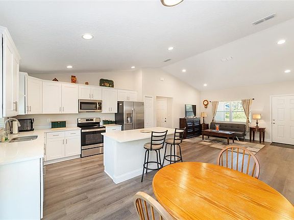Built in 2022, this move-in-ready home offers modern comfort and an open layout designed for easy living. The spacious kitchen features 42-inch shaker cabinetry, quartz countertops, stainless steel appliances, recessed lighting, and a large island perfect for meal prep or casual dining. High ceilings, double-pane windows, and a luxury vinyl plank flooring flow throughout the home, creating a bright and cohesive space. The split-bedroom floor plan provides privacy, with a generous owner's suite that includes a large walk-in closet and double vanity bathroom with quartz counters. Located in the established Marion Oaks community with no HOA, this home sits in a quieter section near a natural preserve area, offering a sense of space and privacy while remaining close to shopping, dining, and major highways for easy commuting. A great opportunity to own a newer home without waiting on construction.