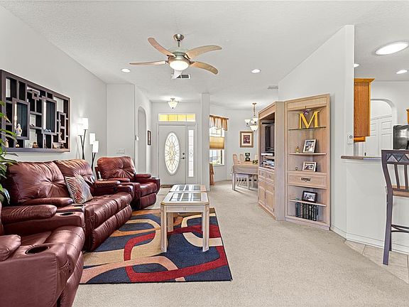 This Ayreshire II is located in the much sought-after 55+ community of Candler Hills inside On Top of the World. It's sitting on a large corner lot with mature landscaping and paver driveway. There are 3 bedrooms with carpet & 2 bathrooms along with a 2.5 car garage perfect for 2 cars and a golf cart. Formal dining room. Spacious living room. The kitchen features corian counters and plenty of wood cabinets for the chef in the family. There is a cozy nook off the kitchen with views of your private backyard. Sliders lead to the enclosed lanai with a split A/C unit giving you extra year-round living space. Primary bedroom is large with a walk-in closet. Primary bath has a double sink vanity and step-in shower. Guest bath has a tub/shower combo. Call for your appointment to view today!