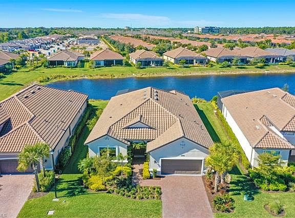 BREATHTAKING POOL & LAKE VIEW HOME Located in Esplanade at Hacienda Lakes, this exceptionally designed 3+bdrm/3 bath, home built in 2019 by Taylor Morrison offers over 3000 sq ft of luxurious Florida living. The beautiful double door entry opens to a spacious great room and a kitchen which includes 42 cabinets, quartz counters, elegant Carrara marble back-splash, huge breakfast bar, premium appliances, gas cook top with vented hood, pantry, under-cabinet lighting, custom drapery, Levolor blinds, 18x18 tile in the living areas, plush carpeting in bedrooms, tray ceilings, designer light fixtures, and impact front windows and doors. The owner suite and 2nd bdrm offer ensuite baths. The 3rd bedroom/bath features a hall pocket slider for ideal privacy. The extended lanai reveals a $100K custom built outside oasis with salt water, gas heated pool and spa, a panorama screen, chef-grade outdoor kitchen, travertine deck and spectacular western exposure. Lush landscaping and outdoor lighting create the perfect finishing touch to surround your future home with tropical beauty. The neighborhood is replete with amenities, low fees and just minutes to world class shopping, dining and beaches.