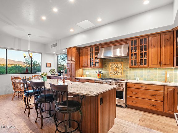Arizona Living at Its BEST...Luxury and style come together in this beautifully crafted custom home located in the picturesque, gated community of Coyote Creek. Be prepared to be impressed by a lavish 4-bedroom, 3-bath split floor plan plus a versatile office space. Recently modernized with new exterior paint, this home is as turnkey as it is stunning. The great room welcomes you with soaring wood ceilings, a cozy fireplace, and picture windows that perfectly frame the spectacular mountain views. The heart of the home is the newly updated gourmet kitchen, featuring custom cabinetry, stainless steel appliances, tasteful backsplash, granite countertops, and a built-in pantry. When it's time to unwind, the spacious primary suite offers a spa-inspired bath with soaking tub, custom shower, and generous walk-in closet. Outside you'll discover the true showpiece: a brand-new heated lap pool that sparkles against the mountain backdrop, creating a resort-style experience year-round. Whether swimming for fitness, lounging under the sun, or enjoying the glow of a Tucson sunset, this pool elevates outdoor living to its finest. Surrounding it, the backyard retreat offers an expansive porch, hot tub, multiple seating nooks, built-in BBQ, artificial turf, mature landscaping, and even a fire pit area for smores .... all designed for both entertainment and relaxation. Additional highlights include two new mini splits in the garage, New HVAC systems, and custom garage doors. Then the oversized 3 PLUS car garage (closer to 4) with epoxy flooring provides ample room for vehicles, toys, and storage. This spectacular property, combined with thoughtful updates and exceptional amenities, makes this a must-see Home. Experience Arizona living at its absolute best.