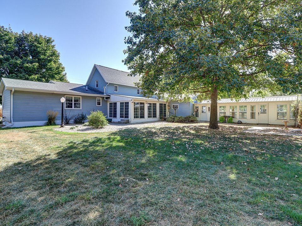 Step into your dream home-this beautifully updated 4-bedroom, 3-bath farmette offers over 3,000 sq. ft. of elegant living space, blending modern comfort with country charm. The main floor master suite is a true oasis with a spa-like bath, walk-in shower, soaking tub, and an oversized 10x19 custom closet. The heart of the home is the gourmet kitchen featuring custom cabinetry, center island, breakfast bar, and stainless steel appliances-all opening to a sun-drenched 15x23 four-season room with sweeping country views. Gleaming hardwood floors flow through the spacious bedrooms and dining areas, while a cozy living room with wood-burning fireplace and built-in cabinets makes the perfect gathering space. New furnace and central air conditioning in (2025). Beyond the home, discover endless possibilities: a breezeway connects to 4-car garage, a heated 16x25 workshop, and heated hobby/display rooms. Golf lovers will appreciate the heated and cooled 17x26 recreation room complete with golf simulator, bar, and big screen TV. A massive 60x100 Morton building with dual 12' doors provides even more space for toys, projects, or business ventures. Outdoor living shines here with a screened camping area, firepit, RV hookups, and a maintenance-free 13x28 Trex deck-ideal for entertaining. The property is professionally landscaped with mature pines and lush greenery for complete privacy. A backup generator and reverse osmosis water system ensure convenience and peace of mind. John Deere mower available for purchase separately. Whether you're relaxing in the sunroom, hosting friends on the deck, or enjoying the private trails, this property offers a lifestyle like no other. Don't miss the chance to call this stunning country estate your forever home!