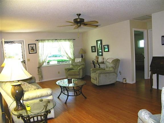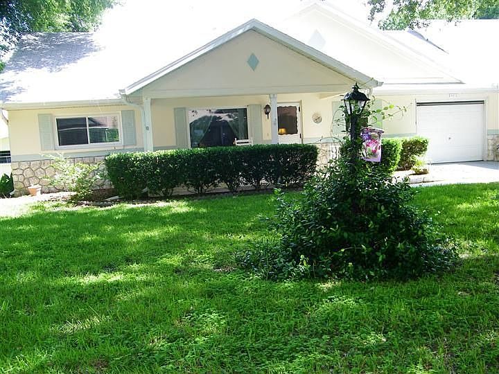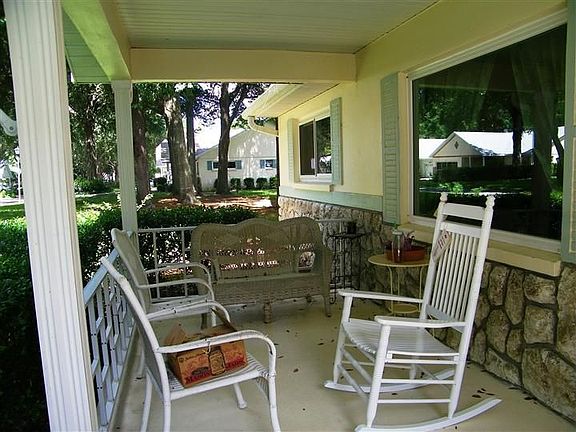 View website: http://8449asw90pl.AgentMarketing.com - This tranquil end-unit Birmingham is for you if you love mature trees nature. The covered front porch welcomes you & is a peaceful place to enjoy the park-like setting listening to the birds or watching the squirrels. You enter the home into an inviting combination living & dining area turn left to enter the bedrooms joined by a hallway bath. The master suite features a walk-in closet & walk-in shower. The right side of the home has the spacious chef-friendly kitchen with nice appliances, including a flat-top stove & bottom-freezer refrigerator & lots of storage. The adjacent family room leads to the vinyl-enclosed lanai with even more space to relax & opens to a covered patio. The deep 35 ft garage has room for both 1 car & a golf cart, houses the washer & dryer, & has room for a workshop area & storage. Neutral colors, laminate flooring in the living/dining area/family room, ceramic tile in kitchen & bathes & new carpet in both bedrooms makes this a very comfy & appealing home.