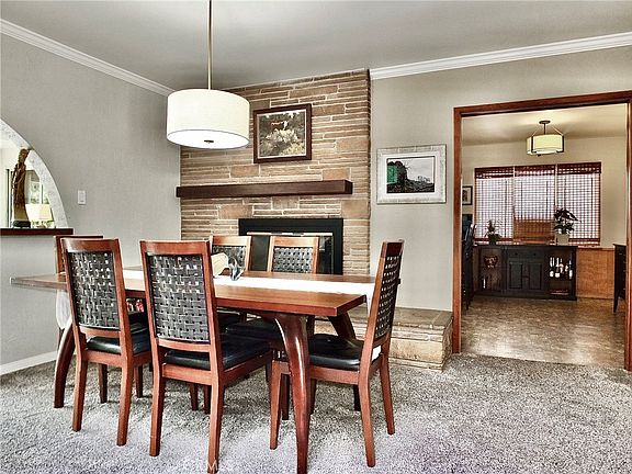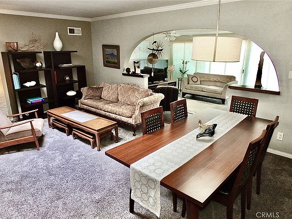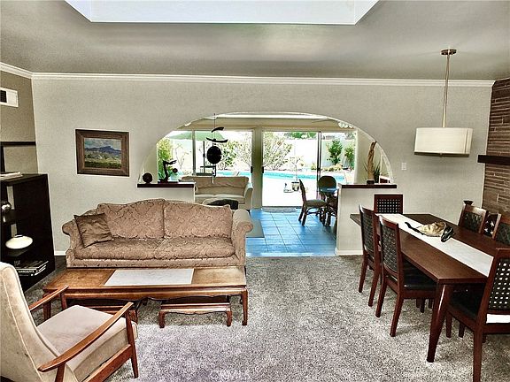MAJOR PRICE REDUCTION. Classic mid-century modern pool home in desirable North Downey neighborhood of Charloma Estates. As you enter the foyer, you're greeted by stunning slate tile floor and beautiful view of the tropical backyard and pool. The large light-filled living room features a skylight and fireplace and is connected by artistic archway to adjoining family room. The spacious open kitchen connects to both the living room and family room, offering an excellent flow for large gatherings. Next to the kitchen is a large formal dining room, which can double as a private office or 4th bedroom through solid birch pocket doors ensuring exceptional quiet and privacy. The roomy primary suite provides ample closets and storage space, along with an elegant en-suite bathroom featuring glass tile and a walk-in shower. The other two bedrooms are generously sized with beautiful original hardwood floors, plenty of closets, storage, and built-ins. A full hallway bathroom with double sinks and a shower/tub serves these two bedrooms. The home includes a large service porch/laundry room with a sink and numerous cabinets, making it an excellent butler’s pantry with a pass-through window to the family room. This home retains its beautiful, well-maintained original features, such as the slate floor entry, hardwood floors, birch pocket doors, pristine tilework in the bathroom and service porch, and Arizona flagstone on the fireplace hearth and front yard planter beds. Upgraded features include the bathroom in the primary bedroom, the guest bath off the living room, Brazilian cherry wood floors in the dining room/office/fourth bedroom, a Bosch dishwasher, new vinyl fence, and pool tiles. Double sliding doors from the family room to the backyard seamlessly blend indoor and outdoor living, making this home an entertainer’s dream. The large patio, inviting pool, lush landscaping (including sago and yucca palms, a seedless lime tree, rose bushes, hibiscus, and plumeria), and unique Tiki bar enhance the outdoor experience. A large side patio can also serve as parking for a boat or third car via a drive-through garage. Situated in a quiet, private, and well-established neighborhood with no neighbors behind, this home backs up to a large elementary school playground, surrounded by trees and offering views of the local mountains. Known for its excellent school district and accessibility to both LA and OC, Downey is just 17 miles from DTLA and 30 minutes from Disneyland and LAX.