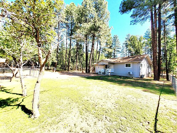 Beautiful Strawberry Cabin is move in ready for your family! This perfect size 2 bedroom, 2 bath with 1 car garage sits on a ¼ +/-acre Ponderosa treed fenced lot ready for your memory making! You'll love the open living room that flows to a perfect sized kitchen that looks out to a forest feel backyard. Kitchen features include your refrigerator, electric range & built-in microwave. Enjoy both a front covered porch and a back screened-in porch to view your 2 & 4 legged friends in our coveted mild 4-season Rim Country area! Anderson windows, mini split AC/Heat & plenty of room for your RV/Toys along with a washer & dryer complete this all-electric cabin as a true memory maker! Definitely a must see!
