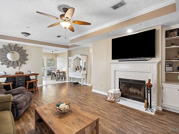 This charming East Montgomery home in Halcyon Oaks offers great curb appeal and an unbeatable location close to everything you need. Featuring a new roof and luxury vinyl plank flooring throughout, this immaculate home sits on a large cul-de-sac lot. It even has a sparkling swimming pool with a new liner! The spacious and open great room and dining area create a welcoming flow, while updated lighting and plumbing fixtures add a modern touch. The owner’s suite provides access to the covered patio and includes a separate shower and garden tub for relaxation. Enjoy outdoor living on the large covered patio overlooking the pool, plus attached exterior storage for convenience. With two spacious bedrooms, updated colors throughout, stainless kitchen appliances, a smart thermostat, and low-maintenance features inside and out, this move-in ready home is perfect as a starter home or a comfortable downsizing option. Very well maintained and full of thoughtful updates, this property truly stands out. Make plans to see this one soon and before it gets away!