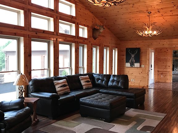 Price just reduced!!! You can own this beautiful Oregon inspired home on approximately 5 acres of land. The home includes 5 bedrooms 5 bathrooms with lots of entertaining areas. Entertaining areas including theater room with theater seating, wet bar, wine cellar, hot tub, inground pool with slide and diving board, outdoor trampoline area, sand volleyball court, outdoor fireplace, workout building with equipment, large bar with gaming area. The main house also includes a beautiful kitchen with a industrial size refrigerator, double ovens, island with seating, lots of cabinet space and granite countertops. The house also includes 3 luxury showers, laundry room, hardwired security system, built in vacuum, 2 fireplaces, outdoor shower and lots of deck space. The house also features 2 detached garages that hold 7 cars which include work benches, car lift, entertainment room and apartment with full kitchen, living room and bath. Also included is a beautiful stamped concrete driveway with gated entrance. If you love beautiful outdoor wildlife this is the place for you. This property is only located 25 minutes from beautiful Lake Cumberland.
