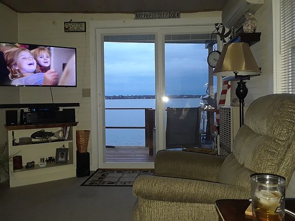 Seasonal camp on Lake Champlain. faces east for great sunrises. 12x60 mobile home with 10x20 addition. Extensive remodeling. New metal peaked roof. Vinyl siding. Newer windows. Remodeled kitchen w/ high end appliances and corian countertops. Pergo laminate in kitchen and dining room. front and rear decks. Bosch washer and dryer in bath. 2 air conditioners. Direct vent heater. Concrete block seawall with walk thru to shore. Includes three 16' sections aluminum dock and 3600# electric boat lift. Located on leased land in a private family owned park.