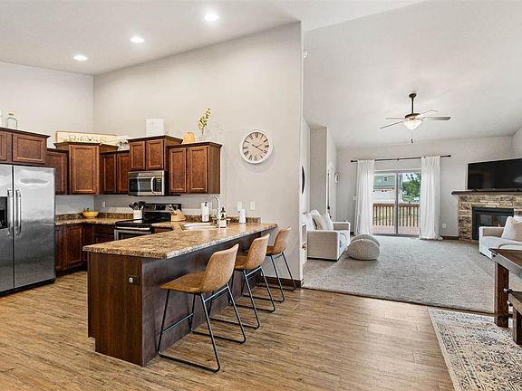 Don't miss your chance on this corner zero-lot in Tiffin! This walk-out ranch boasts everything you could want inside and out. Outside you'll find a spacious fenced-in yard on the corner with a deck and patio for the walkout basement! Inside, you'll find an open floor plan between the kitchen (with ample cabinet space and pantry), dining room (with tons of natural light), and living room (with a gas fire place and access to the deck!). The primary bedroom has private double vanity (glass shower door too!) and walk-in closet. Laundry room, guest bath, and guest bedroom round out the main. Lower level has the walkout from the open rec room, 1 bedroom and 1 bathroom. The 4th bedroom is unfinished making it a perfect storage space until you decide to finish it. Come check out this immaculately cared for home today!