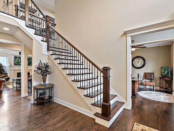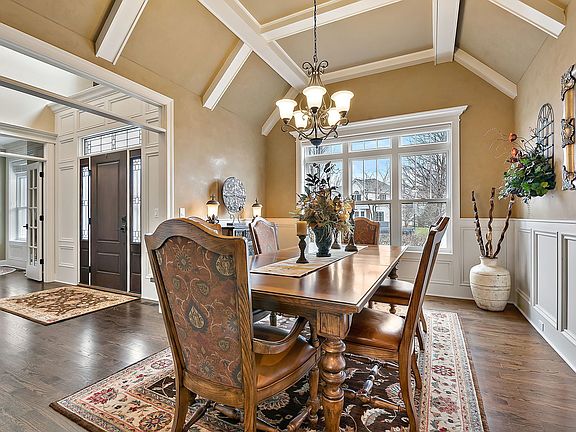 Experience luxury living at its finest in this breathtaking home nestled on the premier lot in Blackberry Creek, with breathtaking wetlands and sunset views. This custom-built home, crafted with the utmost attention to detail and the highest quality materials, was designed as the builder's long-term residence and has been impeccably maintained. The main floor boasts a spacious primary suite with a generous walk-in closet and a lavish bathroom featuring a soaking tub, walk-in shower, and double sink vanity topped with granite countertops. The main floor also includes a formal dining room and a private office with built-ins and plenty of natural light. The home's top-of-the-line trim work, including coffered ceilings, wainscoted walls, and crown molding in every room, adds an air of sophistication. The gourmet kitchen, equipped with stainless steel appliances and granite countertops, flows into a spacious eat-in area and the two-story family room, complete with a cozy fireplace. Step outside onto the deck and soak up the stunning sunset views while entertaining friends and family. Upstairs, you'll find a full bathroom and three additional bedrooms, all showcasing the home's exquisite craftsmanship and millwork. This one-of-a-kind home truly has it all.
