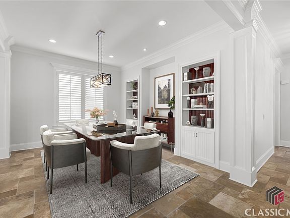 Welcome home to this stunning Charleston Style Cottage in the desirable Villages of The Georgia Club! The fantastic location is steps down a tree-lined path that will take you to all amenities, including country club, pool, tennis, and pickleball. As you enter the home, you will notice the natural light beaming through the French doors lining the living room. To the left of the foyer is the expansive, modern, eat-in kitchen with jaw-dropping woodwork, sleek marble countertops, intricate backsplash, a brand-new 6-burner gas range and dual fuel oven (for the gourmet chefs), warming drawer, and ice maker. The breakfast room encompasses a custom built-in eating area perfect for morning coffee and pastries. Connected to the kitchen is a perfect spot for entertaining guests. With a separate bar, wine cooler, and wine rack, you will surely have the best spot to host gatherings! Cozy-up next to the gas fireplace in the spacious living room and watch the golfers, water fountain and sunsets. The formal dining room has built-in shelves for elegant storage and marble floors. The outdoor space is perfect for enjoying this fabulous location on the championship 9th hole. You have both covered and uncovered decking with built-in speakers, fans to keep you comfortable and easy maintenance trex decking to enjoy the views. Escape upstairs to your spacious owner’s bedroom with another covered porch access. The large en-suite is complete with a jetted tub, separate shower, double vanity, and two walk-in closets with custom built-in shelving. The second and third bedrooms are both generous sized with their own private bathroom and large walk-in closets. The house is tucked back in a courtyard for privacy and an extra spot in the garage for a golf cart or additional storage. The house has recently been painted, new carpet, new oven, and new light fixtures. The Georgia Club is a premier location for those that want to be close to both Athens and Atlanta. This gated community has all amenities one could hope for in a neighborhood that oozes with charm!