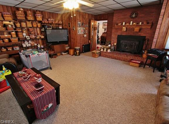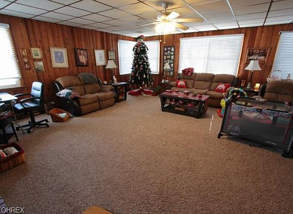 Newer siding, roof and windows. Master bedroom with master bath and large closet, beautiful brick fireplace, 2 car garage with newer garage doors plus 24 x 40 garage with electric, private back yard, large covered front porch and newer furnace and ac. Special assessment $12 per year.