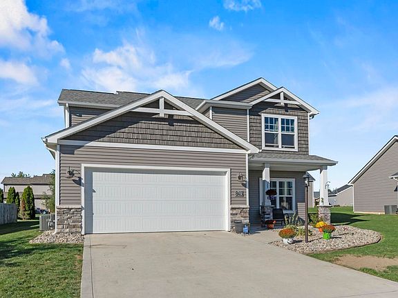 Built in 2019, this home features four spacious bedrooms with one on the main level all featuring walk in closets, and two and a half bathrooms, making it ideal for families or those who enjoy having extra space for guests or a home office. Located in a rural subdivision, it offers a tranquil setting while still providing convenient access to nearby amenities, creating a perfect blend of peaceful living and modern comforts. Greeted through both entries is a built in locker bench, perfect for storage. This home has been taken great care of by the owners, with fresh new paint on the walls and trim, new laminate flooring upstairs- you'll move in with ease and worry free.