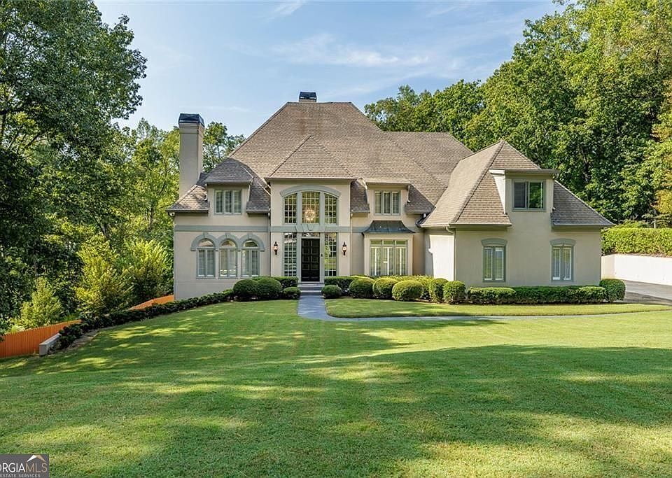 This stunning home, beautifully designed and thoughtfully renovated, sits on over an acre in a private cul-de-sac in the desirable Jett Ferry Manor neighborhood. Surrounded by professionally landscaped grounds, the home has been impeccably maintained and offers the perfect blend of elegance, comfort, and modern sophistication. The grand two-story marble foyer opens to soaring ceilings, hardwood floors, and both front and rear staircases. The formal living room with fireplace flows into a banquet-sized dining room, while the breathtaking two-story great room features a dramatic wall of windows, stacked-stone fireplace, and custom cabinetry, opening to an expansive two-tier deck overlooking the private fenced backyard. The chef's kitchen is a showpiece with custom white cabinetry, quartz counters, tile backsplash, professional-grade appliances, walk-in pantry, and a large center island where family and friends are sure to gather. A bright breakfast room with skylights connects to the vaulted family room with fireplace, creating an inviting everyday space. The oversized owner's suite has an optional sitting area, spa-inspired bath, dual vanities, soaking tub, walk-in shower, and two spacious walk-in closets. Upstairs are three large ensuite bedrooms with large walk-in closets. A hidden sitting room is shared by two of the bedrooms-perfect for teenagers. The terrace level is built for entertaining and is equipped with a game room, full bar area, family room with fireplace, home theatre with custom seating and a state-of-the-art sound system. Not to be missed is a spectacular night sky ceiling. Additional spaces include a bedroom, full bath, office, exercise room, and flexible areas for whatever your lifestyle requires. With four fireplaces, new windows, an open layout, and attention to detail throughout, this home truly has it all. Located in Sandy Springs, it's close to top public and private schools, shopping, dining, Dunwoody Country Club, and has offers convenient access to interstates for enjoying all Atlanta has to offer.