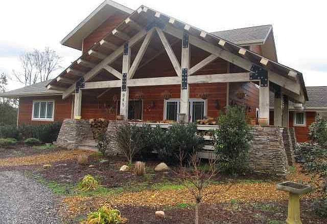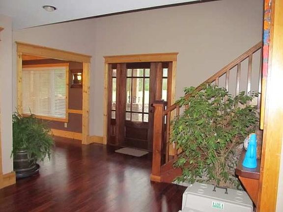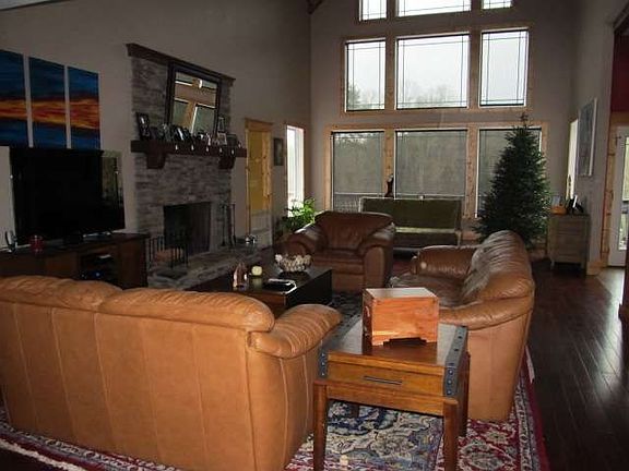 Imagine yourself driving home everyday to your own private retreat! Beautiful custom home, soaring vaulted ceilings, gorgeous hardwood floors & ceramic tile throughout, dramatic separate dining room overlooking the pond. Exposed beams & custom Craftsman style details throughout. Gourmet kitchen, stainless steel appliances, an extra large pantry for all your food storage needs, Granite countertops, a kitchen bar high-top for bar stools to fit a crowd. Perfect for entertaining. Daylight pours into a relaxing sunroom- sit back and read, paint or sip some hot tea. Cozy up to a stunning stacked stone fireplace, and enjoy your open floor plan galore with very spacious bedrooms. Master suite on the main level. Jetted tub and double vanities. Sits on 5 beautiful acres with a pond stocked with Bass, Catfish & Bluegill. 10 feet deep. Come home to your retreat, relax, take a boat ride and go fishing! Then enjoy your rocking chair wrap around deck and porch and take in the sunset with your incredible panoramic views. Enjoy the quiet and the wildlife. Great place to unwind. This home is truly one of a kind. Complete with a full unfinished basement too!! The seller is offering a First American Home Warranty. Excellent NW Location. Qualifies for 100% financing... Welcome home, you will never want to leave.