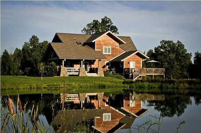 Imagine yourself driving home everyday to your own private retreat Beautifulcustom home, soaring vaulted ceilings, gorgeous hardwood floors & ceramic tile throughout, dramatic separate dining room overlooking the pond. Exposed beams & custom Craftsman style details throughout. Gourmet kitchen, stainless steel appliances, an extra large pantry for all your food storage needs, Granite countertops, a kitchen bar ''high-top'' for bar stools to fit a crowd. Perfect for entertaining. Daylight pours into a relaxing sunroom- sit back and read, paint or sip some hot tea. Cozy up to a stunning stacked stone fireplace, and enjoy your open floor plan galore with very spacious bedrooms. Master suite on the main level. Jetted tub and double vanities. Sits on 5 beautiful acres with a pond stocked wit , Catfish & Bluegill. 10 feet deep. Come home to your retreat, relax, take a boat ride and go fishing! Then enjoy your rocking chair wrap around deck and porch and take in the sunset with your incredible panoramic views. Enjoy the quiet and the wildlife. Great place to unwind. This home is truly one of a kind. Complete with a full unfinished basement too!! The seller is offering a First American Home Warranty. Excellent NW Location. Qualifies for 100% financing... Welcome home, you will never want to leave.