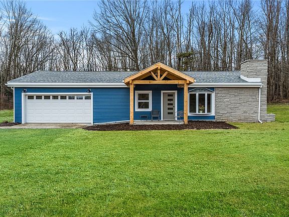 20 + Acres of Bliss! This home has had a full rehab with upscale amenities. 3 generous sized bedroom's with a full master bath with elegant tile and a huge master closet. The kitchen is all new as well with a picturesque view of backyard and wood lot. An attached covered rear patio has a built in fire pit for relaxing and grilling while you entertain guests. The woods has marketable timber and abundant deer population. This is the perfect combo for the rugged outdoorsman and the homemaker with quiet Amish neighbors and yet close to town., Enjoy cool evenings in front of the living room fireplace. All on one floor living convenience with an attached garage for your ride.