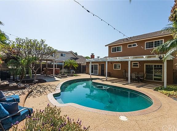 Run don't walk to this beautiful cul-de-sac pool home in a highly sought after neighborhood with OWNED SOLAR, RV parking, main floor bedroom and a ONCE IN A LIFETIME backyard! Your tropical oasis features a gorgeous pebble tec pool surrounded by queen palms, date palms, and apple, plum, orange, peach and apricot trees just to name a few! The yard also features a garden and two outdoor entertaining areas. One is a large patio attached to the home overlooking the pool and the other is a detached gazebo with built-in BBQ, fire pit, above ground spa and sit up bar. Inside the home you will find a beautifully remodeled kitchen with granite countertops, stainless sink, large butcher block island, and recessed lighting. The Kitchen is open to the large family room which has plank tile floors and a stacked stone fireplace. Three bedrooms up one down. Both bathrooms have upgrades and the home has double paned windows and sliders. Better hurry on this one!