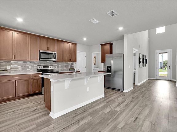 One or more photos have been virtually staged. This nearly new, energy-efficient home offers a first-floor primary suite for added privacy and an upstairs loft that can be customized to suit your family's needs. The interior features white cabinets with Simply White quartz countertops, Skybridge Gray brushed-look tile flooring, and multi-tone tweed carpet as part of the Sleek Interior Package. Additional amenities include quartz countertops, blinds, washer, and dryer. Located in Cagan Crossings at the intersection of SR 192 and US 27 in Four Corners, this home provides easy access to major highways for a convenient commute to Orlando's top attractions, including Disney World, Universal Studios, and downtown Orlando. Just minutes from the Town Center with a variety of restaurants and shops, this rental combines comfort, convenience, and energy efficiency, offering a healthier, quieter lifestyle while saving on utility bills.