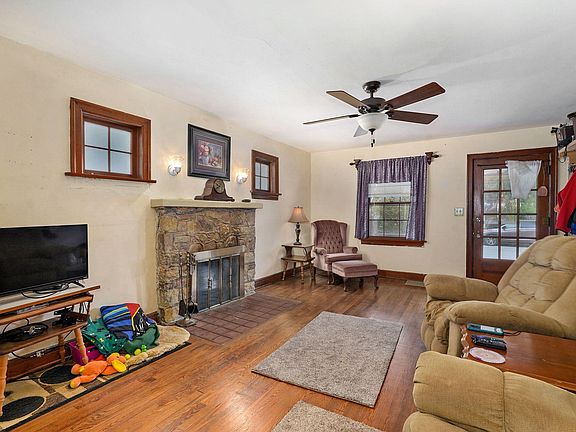 Beautiful home with a warm, inviting feel and plenty of practical upgrades. The kitchen was fully remodeled in 2018 with all-new cabinets, sink, and flooring, while the bathroom flooring was refreshed in 2019. Hardwood floors flow throughout the main living areas, complemented by a cozy wood-burning fireplace in the living room and a formal dining area just off the kitchen.The unfinished basement offers great potential and includes a ventless gas heater for added comfort. Outside, enjoy the privacy of a fenced backyard with convenient alley access through a double gate. Additional updates include new fencing along the south property line (2022), a yard divider fence (2024), and extra gravel added to the parking areas (2019).A dedicated lawnmower shed (2022) accommodates a riding mower, and the property also offers RV parking for a 40-foot motorhome plus a boat. Off-street parking, a private driveway, and an attached garage mean you'll never need to park on the street. Relax on the covered front porch or entertain in your spacious backyard--this home is move-in ready and full of charm.