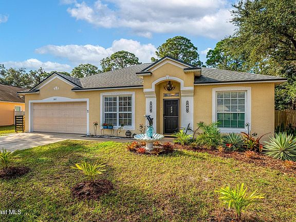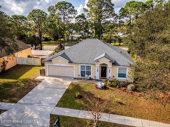 Welcome to this inviting 3-bedroom, 2-bath home in a cozy, well-maintained neighborhood in Titusville. Recently updated with a brand new roof (2022), A/C system (2 years old), and many modern finishes within the last 2-4 years, this home features a separate bright office and a convenient kitchenette near the foyer. Wide doors lead to an open kitchen boasting quartz countertops, stainless steel appliances (2-4 years old), and a spacious great room. The private backyard is planted with tropical plants, creating a serene atmosphere. It also features a covered patio, a built-in grill area, and a storage shed. Schedule your viewing today!