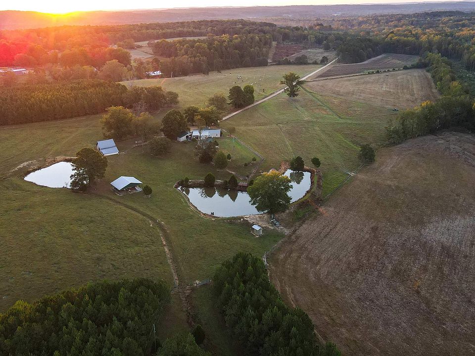 Tucked away in a private setting, Indian Creek Farm has been cherished by the same family for nearly a century, offering a rare opportunity to continue its legacy. With fenced pasture, productive ground, managed timber, and year-round water, the property is ideal for a homestead, livestock operation, hunting, or sustainable farming. This turnkey farm includes an equipment package with two John Deere tractors, a John Deere UTV, and extensive infrastructure. At its heart is a meticulously maintained 2003 manufactured home on a brick foundation with a metal roof. Overlooking two spring-fed ponds, the 2,088 SqFt home features three bedrooms, two baths, a carport, front porch, backup generator, two tornado shelters, city water, a well, and fiber internet. Several barns and outbuildings provide ample space for equipment, livestock, and projects, including a historic barn. Indian Creek and the ponds offer year-round water, and the land is thoughtfully managed for livestock and timber.