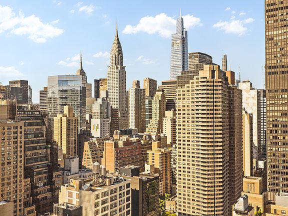 This impressive home measures 1,493sf and boasts 10-foot ceilings and floor-to-ceiling windows that frame sweeping views of the Manhattan skyline including the Chrysler Building, Empire State Building, East River, and New York's iconic bridges.