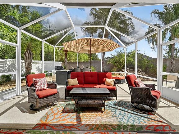 Welcome to your Oasis in the Villages. This Arlington courtyard villa on a corner site with room for a pool is the definition of WOW. The upgrades are too numerous to list but several are large bird caged with a hot tub and summer kitchen and TV. Also, a large patio with a fireplace and covered seating area. The home has a brand-new roof coming, The home also has a leased solar system resulting in lower electric bills. Some interior features include laminate flooring throughout, plantation shutters, and stainless-steel appliances. There are many more upgrades that make this a one-of-a-kind property in the villages. You will immediately fall in love with this property. The information here is deemed to be correct but should be verified by the buyer. Seller's payed $550,000.00 and did $50,000.00 in UPGRADES their loss is your gain!