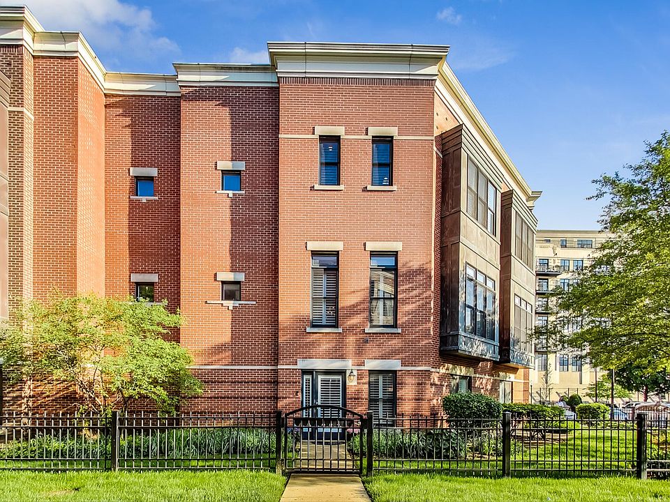 Sun drenched corner townhome in University Village boasting park and skyline views from each of the 3 private outdoor spaces. Large, private rooftop deck is an entertainers dream. Brazilian cherry floors and natural light flow throughout this entire home. Fourth bedroom on main level has en-suite full bath, making it great for guests. Unit has been painted a light grey and new neutral colored carpet installed in primary bedroom since photos were taken. Location allows easy access to 290, 90/94, CTA, Whole Foods & many other retail & restaurants. Currently tenant occupied - Minimum 48hr notice REQUIRED for all showings.