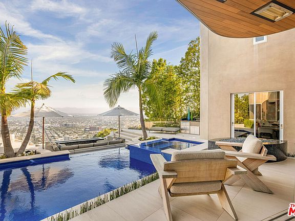 Perched in one of Los Angeles' most impressive hilltop enclaves, this stunning and sophisticated contemporary estate offers an unrivaled living experience with commanding, unobstructed views that stretch across the entire LA Basin from downtown to the Pacific Ocean. A private, gated driveway leads to a spacious motor court, providing both privacy and ample guest parking. Inside features soaring ceilings and a dramatic two-story living room with walls of floor-to-ceiling glass that blur the lines between indoor and outdoor living. An expansive terrace featuring an architectural infinity-edge pool, spa, and generous areas for dining, lounging, and entertaining all set against a breathtaking cityscape backdrop. Designed for both grand-scale entertaining and intimate daily living, the home features a formal dining room with panoramic views and an open-concept chef's kitchen equipped with top-of-the-line appliances, custom cabinetry, and an oversized center island. A sleek built-in bar, a state-of-the-art screening room, and a separate media lounge with its own stunning views offer endless opportunities for recreation and relaxation. The luxurious primary suite is a serene retreat, complete with a private balcony, spa-inspired bathroom, and walk-in closet. Guest wing featuring its own bar and living space offers the perfect setup for extended family, guests, or staff. This is a rare opportunity to own a contemporary architectural gem reimagined by Guy Dreier Designs, that embodies the very best of California luxury living privacy, design, scale, and truly awe-inspiring views.