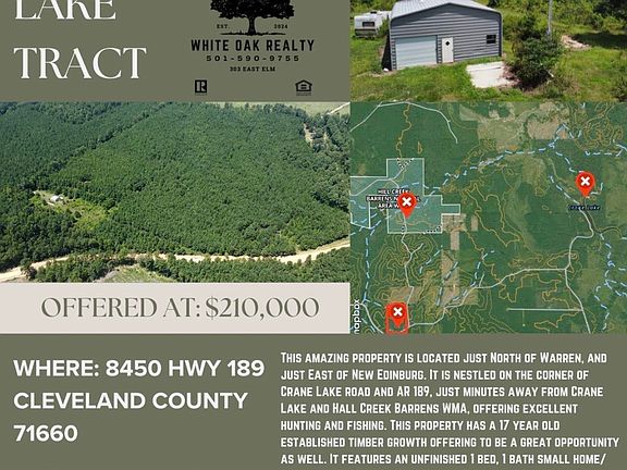 This 62 acre property is a hunters dream! Located just about 15 minutes away from Warren, and about 10 minutes from New Edinburg, it offers very seclusive living or camping while still being close to town. The wildlife on this property is outstanding, with deer, turkeys, and hogs present. This property is located just 1 mile South of the Hill Creek Barrens Natural Area WMA offering more great hunting, and also Crane Lake is approx. 4 miles away offering great fishing. The 1 bed, 1 bath metal building on the property offers to be an exceptional hunting camp. It is plumbed with rural water and it also has electricity as well as a septic tank installed. It is not finished out but there has been work done on the inside. (see pics) Call Josh Nichols with White Oak Realty today to check this fine property out!