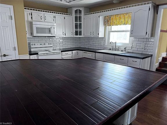 Cute As A Button, Stick Built Ranch in Rural Hall on half an acre, 3 BR, 2 1/2 bath and a 2 car attached garage. Kitchen Features a Massive Island, Pantry, Glass Cabinet doors in Corners to Display Your Favorite Dishes, Kitchen is Open to Your Choice of Extra Living Room or Formal Dining Room, up a few stairs to the Living Room with patio access on both sides, Nice Covered Patio/Deck Areas in 2 Separate Outside Spaces, Tons of Room for Family & Friends to Gather & Enjoy being inside or outside. Primary Bedroom with Enormous Closet, Primary Bath Features Garden Tub, Separate Shower & Double Vanity Sinks. Huge Yard with Circle Driveway leading into the 2 Car Attached Garage, Laundry Room on Main Level. Close to Winston but Feel Like You're in the Country! Home Qualifies for USDA 100% Financing! Storage Building & Detached Garage Are Neighbors, there are no storage buildings or detached garages on this property.