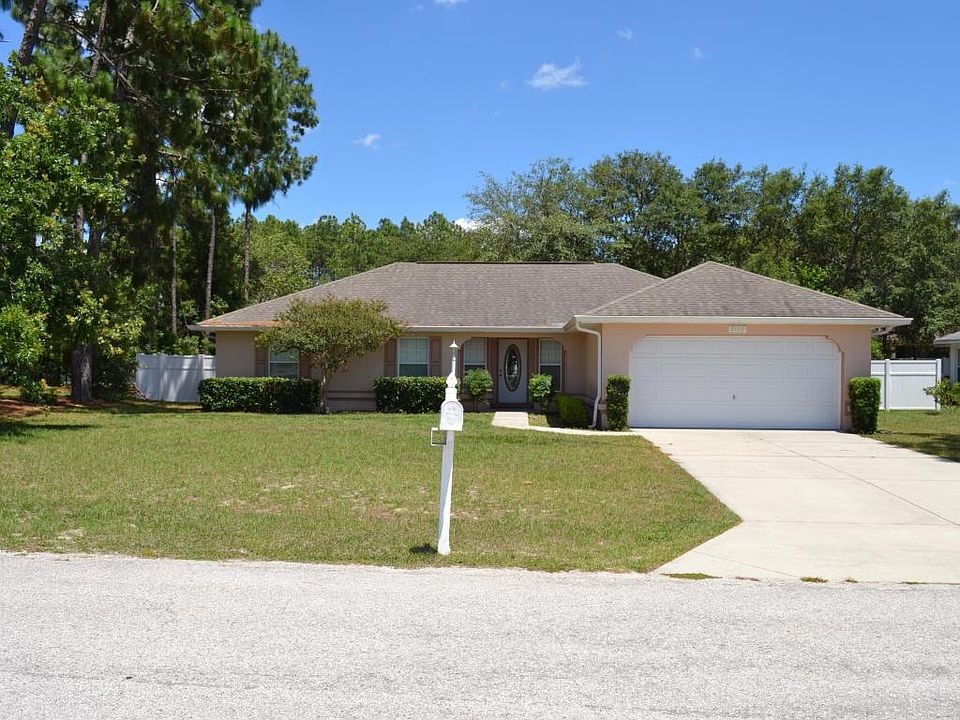 Beautiful neutral color tiled floors and plenty of natural light flow throughout this home's open, airy layout. A generously sized living/dining area is graced by huge windows and sliding doors that lead out to the rear patio. The recently renovated kitchen will inspire the chef in you with granite counters, custom cabinets, lots of storage and deep double sink. Other special highlights of this 4BR/2Bath charmer includes: a breakfast nook for those peaceful morning tea or coffees, a breakfast bar, granite counters also in bathrooms, spacious BRs and double sinks in the master bath. In addition to the plant shelves and alcoves for those decorative pieces, you will enjoy the convenience of this neighborhood located only minutes from shops, restaurants, schools, Hwy 200 and I-75.