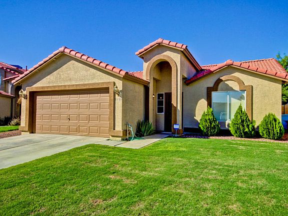 Charming one story starter home with 2bd/1ba and 911 sq ft. Lush green landscape, north/south exposure. Open concept floor plan. Dramatic vaulted ceilings, warm interior tones, plush neutral carpet and lots of natural light. Glass doors to patio from Great Room. Chefs kitchen features breakfast bar, stainless/white appliances and plethora of oak cabinetry. Ceramic tile floor in all the right places. Plush carpet in all bedrooms. Master suite is bright and cheery with large walk-in closet. Backyard has a covered patio and plenty of space for a pool! Exterior was painted last year. Call now to view this move-in ready home!