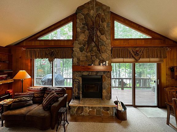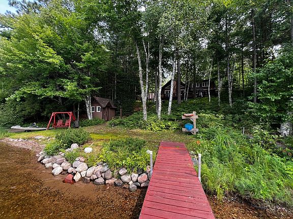 The quintessential Northwoods lake home on an great crystal clear lake with perfect sand frontage is available to you! This home will check a lot of boxes and has been very well cared for. Spectacular sunset views are totally unobstructed by cabins and development across the lake. Main floor primary bedroom walks out onto a large lakeside deck. 4 beds in loft for plenty of extra sleeping room. Main floor laundry. Large 4+ car garage and a couple of very nice sheds including one lakeside. The property comes furnished so you can just start enjoying immediately.
