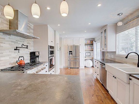 Resting on a large lot, the wide walkway leads you to the front door and covered front porch. This 2,404 sq ft tri level sits in a quiet cul-de-sac. The mature landscape features mountain views from 2 of the 3 decks and is fully fenced. This home has new hardwood floors, tile, fresh paint, light fixtures, window coverings, all new high-end appliances, a whole house humidifier, A/C, automatic sprinklers and hot tub. The family room has a wood burning brick surround fireplace that sides to sliding glass doors that open to the hot tub area. The newly remodeled bright chef's kitchen with concrete counter tops flows onto a large deck that is perfect for grilling & entertaining & steps down to the landscaped lawn. The master has the best views in the home from its own deck. The master suite includes a walk-in closet and three-quarter bath. This house has been updated inside and out and is move in ready.