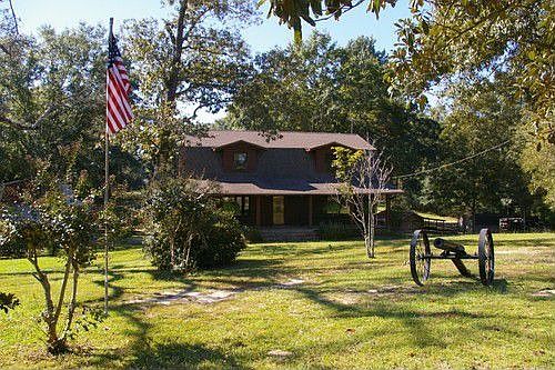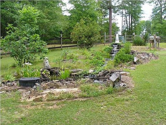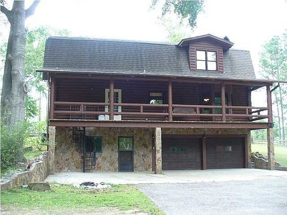 This home feels like a mountain chalet offering you your own Country oasis right in the center of town. From the moment you drive down the private driveway you'll begin to enjoy the plush greenery throughout the 2.9 acres filled with various fruit trees and your own beautiful fish pond with waterfall. The property also includes a 40' X 40' metal wired workshop with running water, small stable, pump house and is fully fenced. Another unique feature is the outside spiral staircase that leads up to the covered porch on the back of the home. Enjoy the 2 large covered porches one off the front and one off the back of the home with views of beautiful woods and grounds. Great for relaxing and enjoying lazy summer afternoon barbecue with friends and family. Step inside this beautiful log home to enjoy the rustic feel of a true log home with wood log walls, open ceiling and wood beams, beautiful solid pine hardwood flooring throughout the main level. The large kitchen features canister lighting, stained concrete countertops with slate backsplash, stainless appliances, lots of cabinets and counter space with hardwood floors through out. The guest bedroom located on the main level is very spacious with large window. The main bathroom has a claw foot tub and a very unique rock and wood vanity, Enjoy the large family room with wood beams, open ceiling to the loft area and a beautiful fireplace to warm you on those cold winter nights. Extra features include custom 2 wood blinds and drapes and ceiling fans. The upstairs loft area overlooks the family room and dinning area and can be used as an office area or be closed off to make another bedroom. The master bedroom is cozy with wood beams and high ceiling with is own master bath and walk in closet. Step down stairs to a 3rd bedroom with scored concrete flooring, laundry room, 3rd bath and closet. This home has major curb appeal. You must see to appreciate all this property has to offer. (Uploaded Monday)