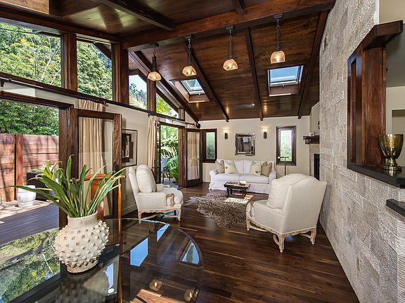 Tucked away on a quiet street in the hills of Laurel Canyon a private custom Zen like retreat awaits. A private garden entry perfect for al fresco dining leads into a spacious living room with rich wood, vaulted ceilings, and abundance of light streaming through skylights & glass doors. A large master suite with lush Bali feel looks out to woodsy canyon hillside with deck, two walk in closets, steam shower and spa tub. The chef's kitchen comes equipped with stainless appliances, stone countertops and ample space for wine lovers. Downstairs a large second master bedroom could easily duel as family room or media room with double doors that open to back deck and yard. Two additional bedrooms downstairs all with en suite full baths, large laundry room with generous closets throughout. With exceptional indoor outdoor flow, brand new roof, gated driveway, HVAC, security system and Wonderland School District, this is truly a must see.