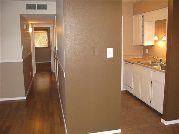 Stylish, updated Condo in perfect Far NE location--EZ care! Upstairs unit=views + one level living space. Decorator colors, pretty laminate tile flooring, updated windows, solar tube skylights brighten kitchen-bath, refrigerated air! Lush, colorful, well maintained grounds...Assoc fee = bldg exterior, roof, water, sewer, refuse, pool, structure insurance + more. Refrigerator washer/dryer convey.