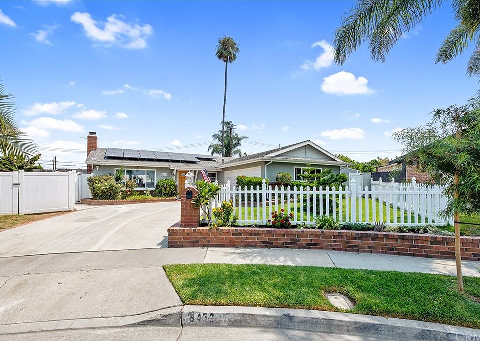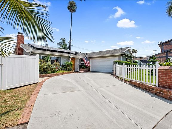Beautiful Talbert Plaza Pool Home. Was the Model when built. Ranch style one story home with RV parking, and sparkling salt water pool with slide. Lots of yard still available which includes amazing, unique fruit trees- including Cherimoya, Longan, jujubi, Passion Fruit, and purple and white Dragon Fruit. Open spacious floor plan with remodeled kitchen with granite counter tops. Large eating area off the kitchen. Sun Power Solar System. updated 200 amp meter. New roof in 2003. RV parking is estimated at 12 x 26. Some Upgrades Include- stucco, insulation, dual pane windows, surround sound for speakers throughout home. 4th bedroom addition is MASSIVE. Has nicely sized walk in closet. Attached huge master bathroom with big soaking tub and large custom shower. 3rd bedroom is as large as a master with attached 3/4 bathroom. Located at the end of a Cul de sac, on a huge pie shaped lot. Located interior tract in a fantastic neighborhood. New shopping, freeway, schools, and approximately 4 miles from the beach. Just waiting for its new family!