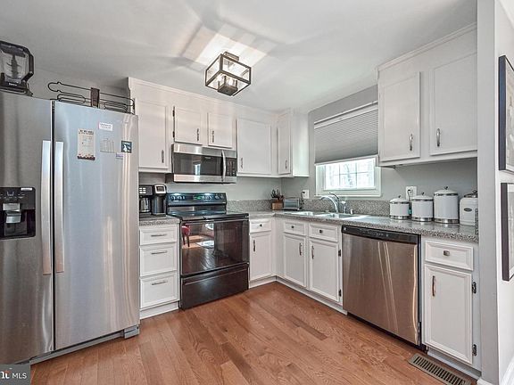 Spacious 3 Bedroom 2 Bath split level home. Enjoy the privacy and traffic free benefits of living on a pipe stem just off a cul-d-sac. This home boasts gleaming Hardwood floors throughout the main level. The Owners Bath was renovated in 2022 and the Main Bath updated in 2021. The kitchen refrigerator and dishwasher are newer. HVAC system replaced in 2016. The spacious dining room has a French door leading to large deck overlooking a fenced private yard with a shed. The lower level consists of a large rec room, a laundry room, and an entrance to a two garage with auto openers. Listing agent related to seller