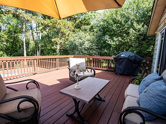 Privacy and close to everything right here! .7 acre w/ mature trees for beautiful views of tranquility. Plus, a pool to enjoy the summer to the fullest. Restructured and updated kitchen w/ brilliant center island for entertaining! Lots of cabinets, beautiful countertops and lighting. All opens up to the living room and deck. Everyone is in the same place. Upstairs bathroom is remodeled with thought put into it; double sinks and a window for natural lighting. The owner's suite has the perfect 1/2 bath for privacy. Two family rooms; main floor has a wood burning fireplace (seller's haven't used) and fourth level is second family room for generations of gatherings. 3/4 bath is off the laundry and convenient to both family rooms. New water heater.