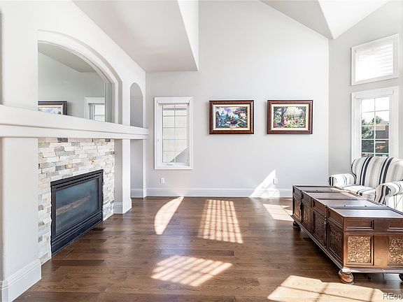 Rare Opportunity! Don’t miss this beautifully remodeled 2-story home backing to the Lone Tree Golf Course, offering scenic views of the 8th fairway and the surrounding natural landscape. With nearly 5,000 square feet of living space, this home features 5 bedrooms, 5 baths, and a fully finished walk-out basement. The newly remodeled main level boasts wide-plank ash hardwood floors, a vaulted living room and study with a dual-side stone fireplace, a dining room with decorative faux wood beam, and a dramatic 2-story great room with expansive windows showcasing stunning golf course views. The brand-new kitchen includes top-of-the-line Wolf appliances, a 60" Sub-Zero fridge with adjoining dual temperature wine cooler, high end Crystal cabinets, quartzite countertops, and a remodeled walk-in pantry. The powder room and laundry room have also been fully updated. New baseboards and lighting throughout the main floor adds a fresh, modern touch. The upper level features a vaulted primary suite with a fireplace, sitting area, serene golf course views, and a 5-piece bath with a Jacuzzi soaking tub. There are two additional bedrooms, a newly updated full bath, and a fourth ensuite bedroom with a 3/4 bath. The finished walk-out basement offers a spacious open layout, a 5th bedroom, and a full bath. Outside, enjoy the newer deck, fresh exterior paint, and professionally landscaped yard with mature trees. Additional features include newer windows, a dual staircase, brand-new carpet and interior paint throughout, handsome walnut doors, and an extra-deep side-load garage. This home is conveniently located close to the Lone Tree Recreation Center, neighborhood park, and is near shopping, dining, entertainment, medical facilities, community pool, tennis courts, walking trails, with easy access to highways and light rail.